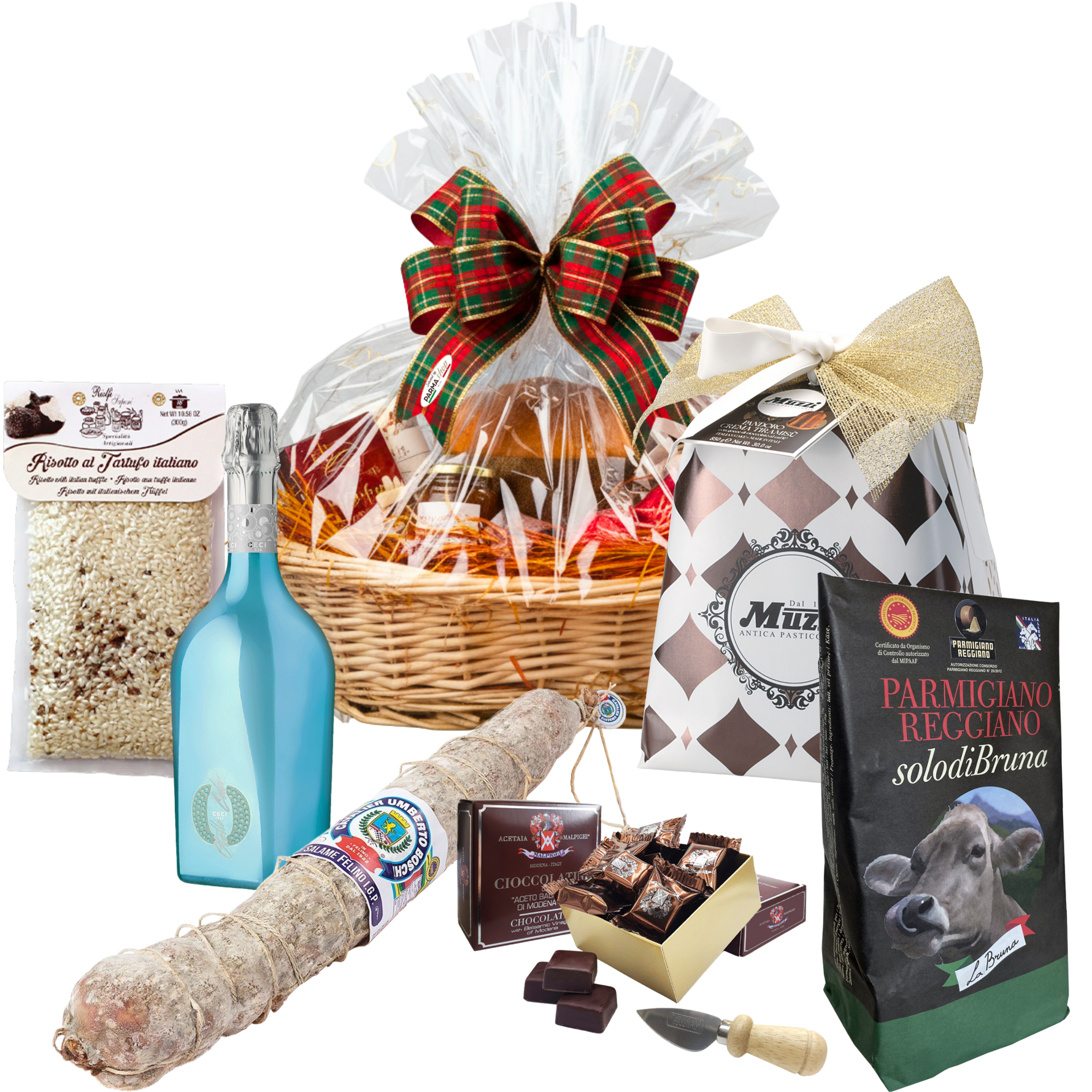 Der Barney-Spezialitätenkorb ist die ideale Wahl für ein unvergessliches Weihnachtsfest voller raffinierter und traditioneller Geschmacksrichtungen. Er enthält den exklusiven Parmigiano Reggiano g.U. Bruna Alpina mit einer Reifezeit von 24 Monaten und die schmackhafte Salame di Felino g.g.A., Symbole für italienische Spitzenqualität. Ergänzt wird der Korb mit dem kostbaren Risotto al Tartufo, dem zarten Handgewickelten Pandoro Tradizionale , den begehrten Cioccolatini all'Aceto Balsamico di Modena g.g.A. und dem Schaumwein Otello Wine Color Extra Dry, um stilvoll anzustoßen.