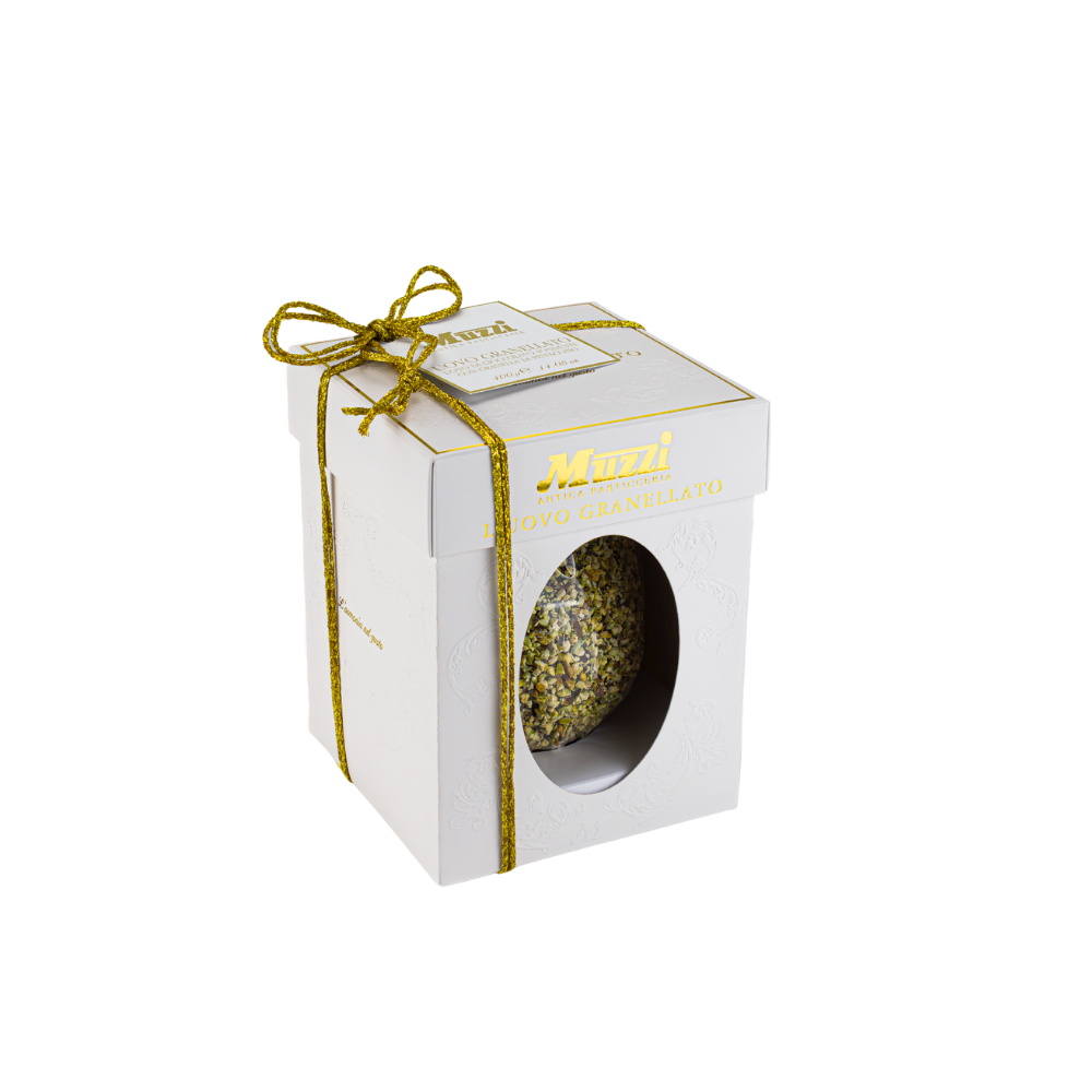 Das elegant verpackte Egg Granellato Muzzi Es ist ein Symbol für die Umbrianische Süßwarentradition und eine Hommage an die Qualität italienischer Zutaten. Perfekt für alle, die handwerklich hergestellte Schokolade und mit einem raffinierten und stilvollen Geschenk beeindrucken möchten.