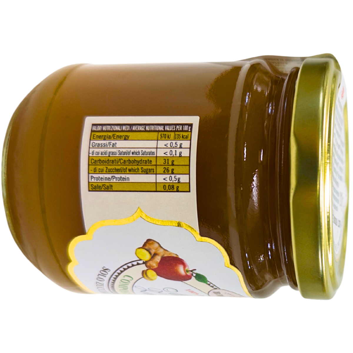 Ideal for those with refined taste, this compote is a perfect addition to a well-stocked pantry that appreciates Italian excellence and certified quality. Each jar is a small masterpiece of taste: Apple selected from organic farming, Ginger fresh ginger is reduced to strands that give the product texture and personality (the presence of strands is due to the use of real blended ginger roots).