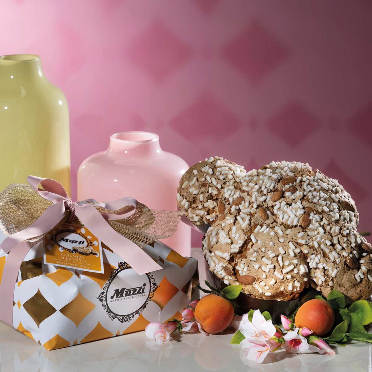 The Apricot Colomba Antica Pasticceria Muzzi's colomba pasquale is the result of the encounter between the great tradition of Italian artisan pastry and the search for selected ingredients, capable of transforming a Easter dessert into a unique sensory experience.
