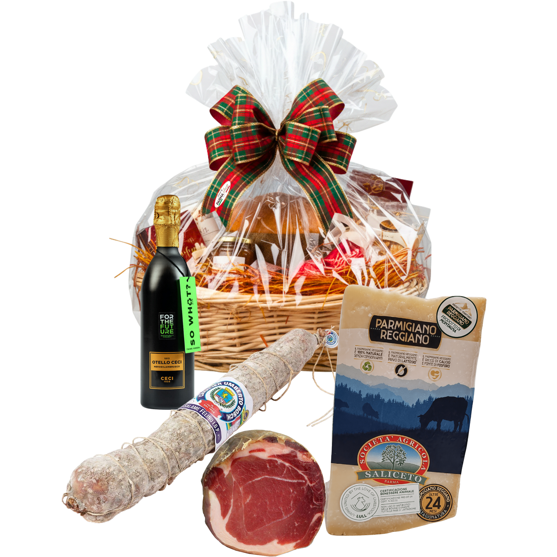 Il Cesto Specialità Farnese rende omaggio all'eleganza e alla tradizione, evocando la storica famiglia Farnese, che per secoli ha rappresentato il potere e la cultura italiana. Questo cesto racchiude l'essenza della cucina emiliana, con sapori che raccontano storie di antichi banchetti e convivialità. Il carattere deciso del Parmigiano Reggiano DOP di Montagna e la raffinatezza del Fiocco di Prosciutto richiamano i sapori autentici del passato, mentre l'Otello Nerodilambrusco invita a brindare alle radici storiche e culturali dell'Italia.