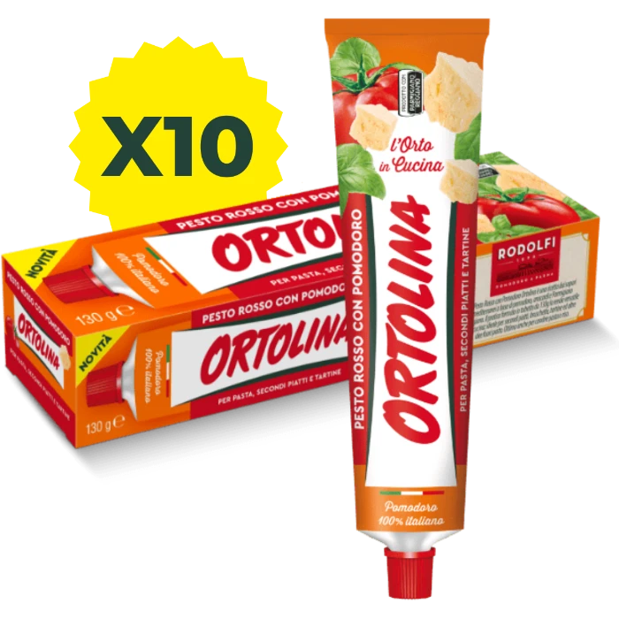 https://www.parmashop.com/sv/products/ortolina-rod-pesto-med-parmigiano-reggiano-sub-10x130-grZCN00543BOrtolina - Röd Pesto med Parmigiano Reggiano SUB - 10 x 130 gr. Pesto Rosso Ortolina med Parmigiano Reggiano SUB är en smakrik kräm baserad på tomat, cashewnötter och Parmigiano Reggiano, med en intensiv och medelhavsinspirerad smak. Den kommer i en praktisk tub på 130 g och är perfekt till aperitifer, snabba rätter eller som kreativ smaksättning till läckra pastarätter. Praktisk, mångsidig och full av äkta smak.https://www.parmashop.com/cdn/shop/files/ORTOLINA_PESTO_ROSSO_10x130_700x700_584c8e30-a296-4732-9eff-8ed442e16097.webp?crop=center&height=300&v=1757689319&width=300https://www.parmashop.com/cdn/shop/files/ORTOLINA_PESTO_ROSSO_10x130_700x700_584c8e30-a296-4732-9eff-8ed442e16097.webp?crop=center&height=100&v=1757689319&width=10029.729.70.00.0
